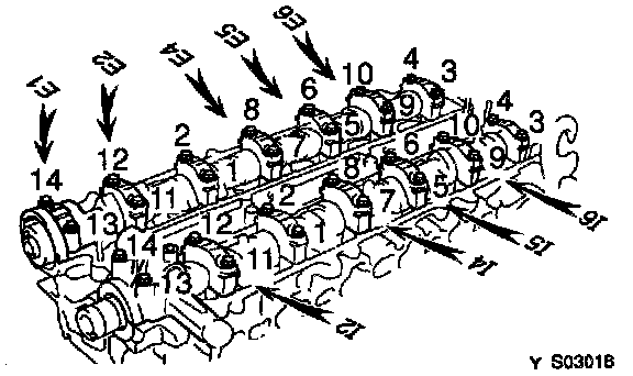 e. Retighten the cylinder head bolts 90°in the numerical order shown.