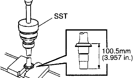 Using SST and a press, install a new dust cover until the distance from the tip of the inboard joint shaft to the dust cover falls within the specification, as shown in the illustration.