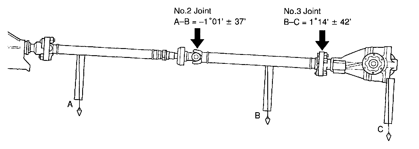 INSPECTIONNOTICE: When performing operations which involve the removal and installation of the propeller shaft, always check the joint angle. Make adjustments if necessary.