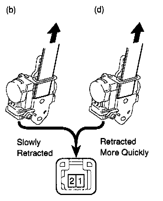 d. Pull the belt upward and check that the belt is retracted more quickly when released than in (b).