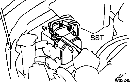 Using SST, disconnect the 6 brake lines from the ABS & TRAC actuator.