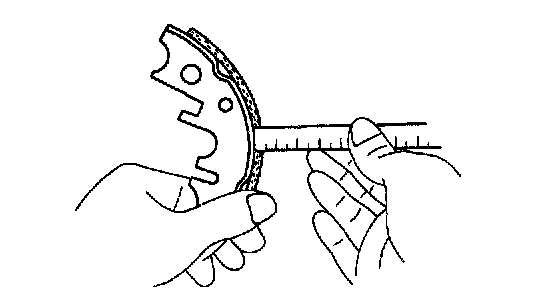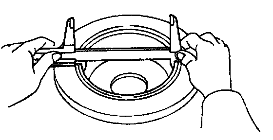 Replace the disc if the inside diameter is at the maximum value or more. Replace the disc or grind it with a lathe if the disc is scored or worn unevenly.