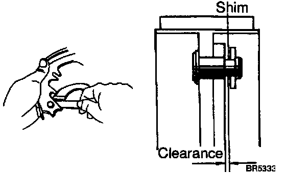 If the clearance is not within the specification, replace the shim with one of the correct size.