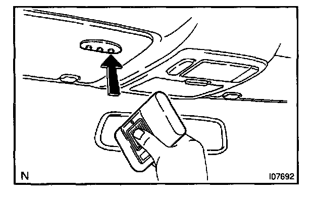 b. In the condition of (a), bring the original transmitter to within 1-inch area around the garage door opener and press the switch. (code transmitting).
