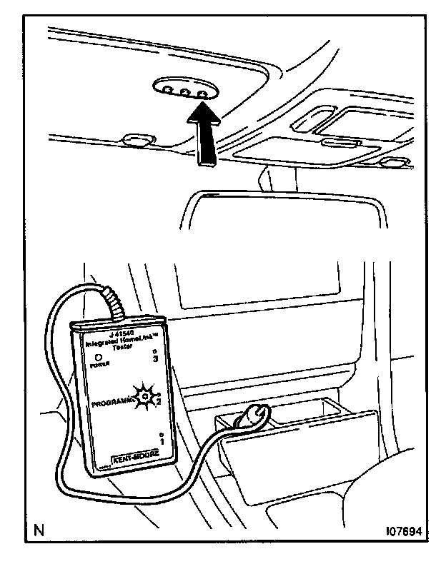 HINT: Use the home link tester made by KENT MOORE for this test. As it is necessary to record the code of the hand held transmitter, customer's code will be erased. When the inspection completes, please register the customer's again.