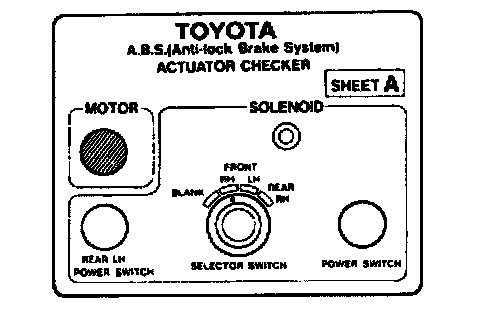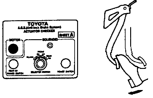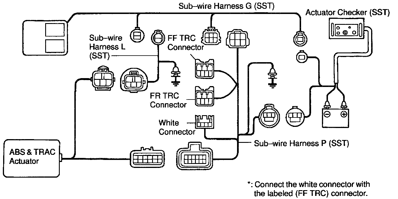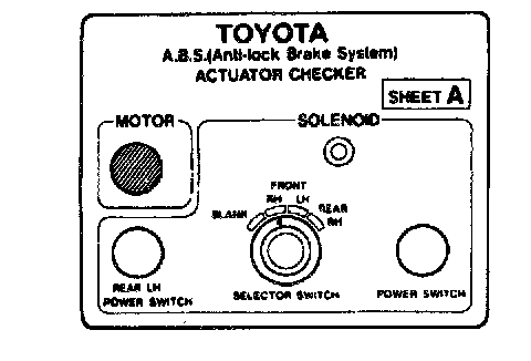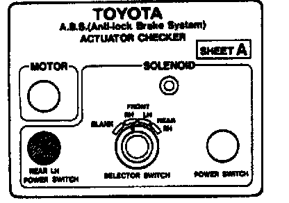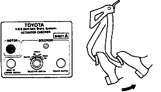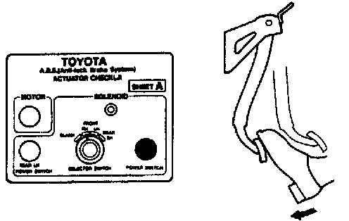 ON-VEHICLE INSPECTIONHINT: Using the ABS actuator checker (SST), check the operation of the actuator. If the actuator does not operate, check the operation of sub-wire harness G. If the solenoid and/or pump motor relay are abnormal, replace the relay and inspect the actuator operation again.