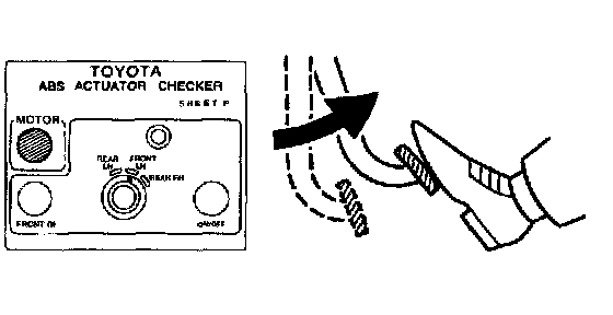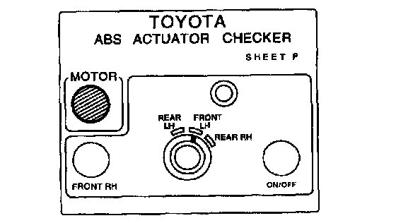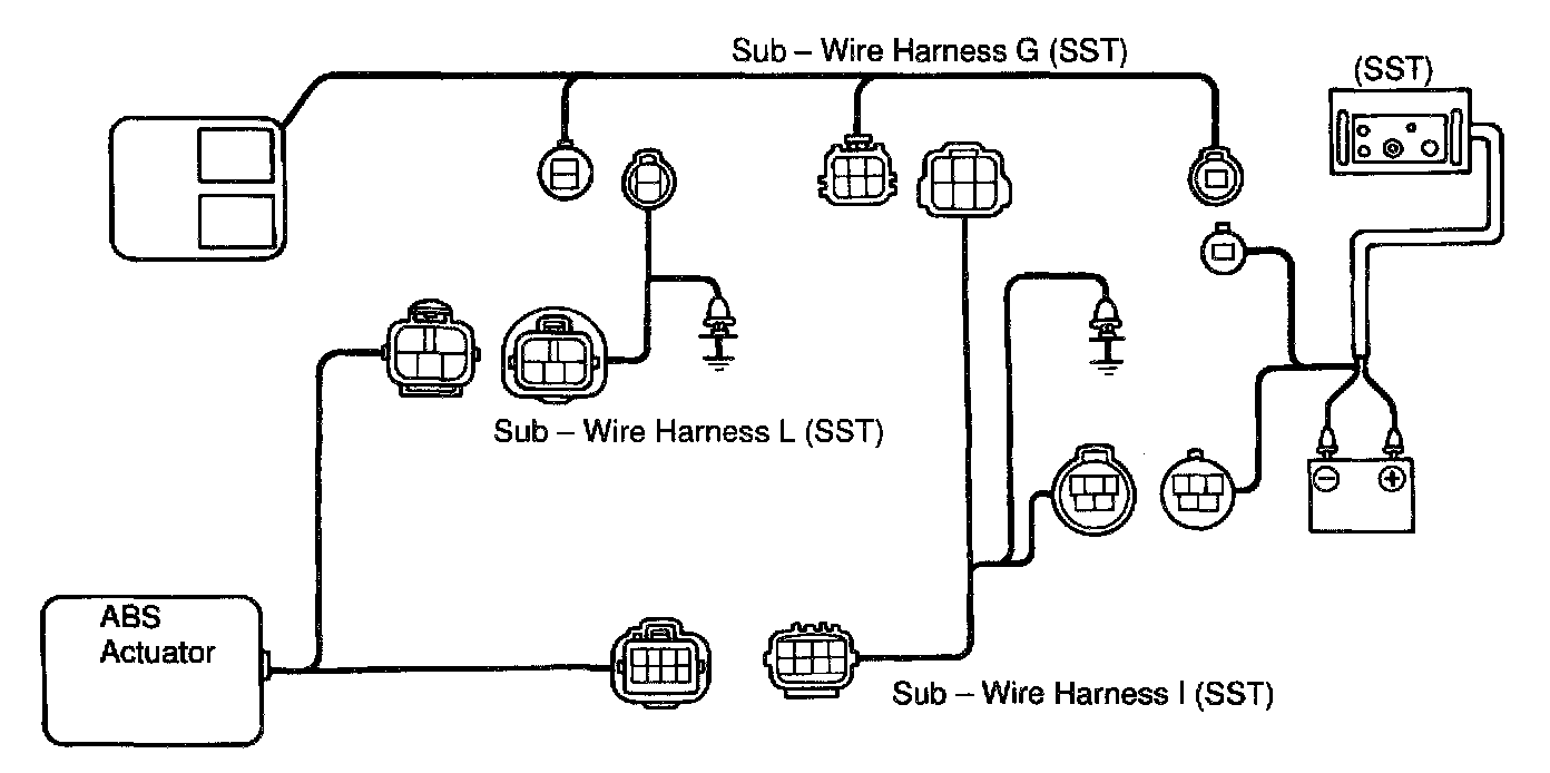 ON-VEHICLE INSPECTIONHINT: Using the ABS actuator checker (SST), check the operation of the actuator. If the actuator does not operate, check the operation of sub-wire harness G. If the solenoid and/or pump motor relay are abnormal, replace the relay and inspect the actuator operation again.