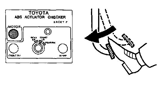 j) Depress the brake pedal and hold it for about 15 seconds. As you hold the pedal down, push the MOTOR switch for a few seconds. Check that the brake pedal does not pulsate.