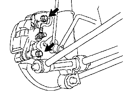b) Suspend the disc brake securely. Ensure that the hose is not stretched.