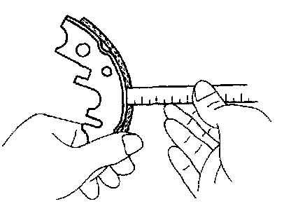 Replace the disc if the inside diameter is at the maximum value or more. Replace the disc or grind it with a lathe if the disc is scored or is worn unevenly.