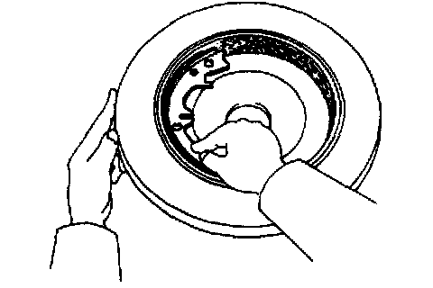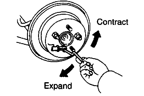 c) Turn the adjuster and expand the shoes until the disc locks.