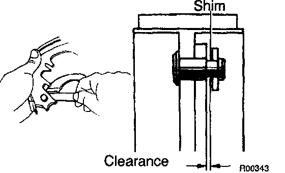 If the clearance is not within the specification, replace the shim with one of the correct size.
