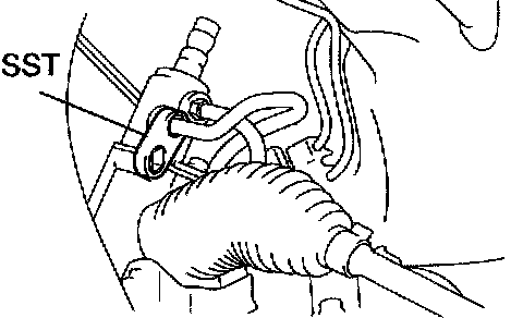 a. Using SST, disconnect the pressure feed tube and return tube.