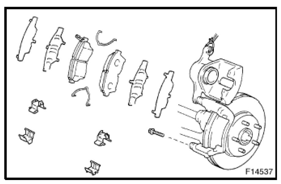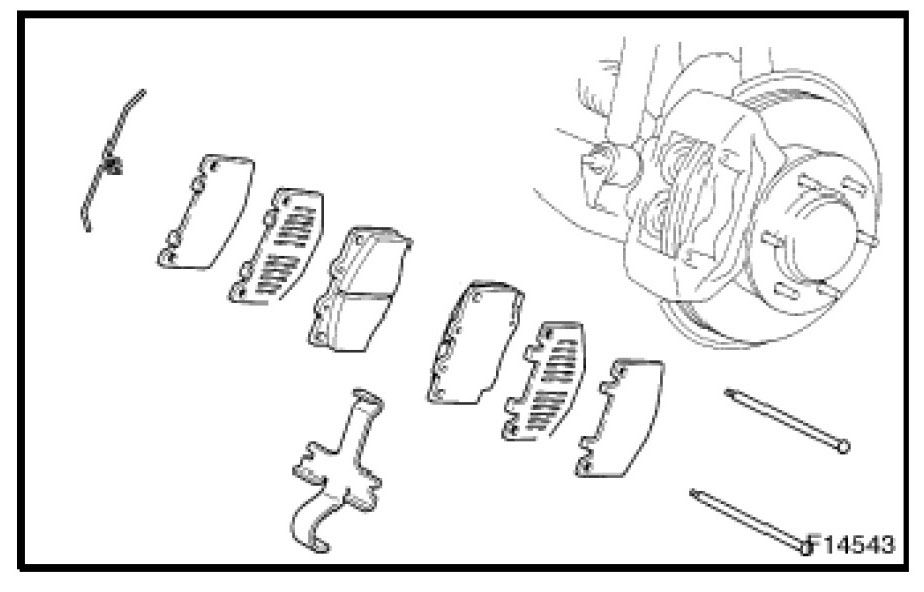 b) If equipped with anti-squeal spring: Remove the anti squeal springs.