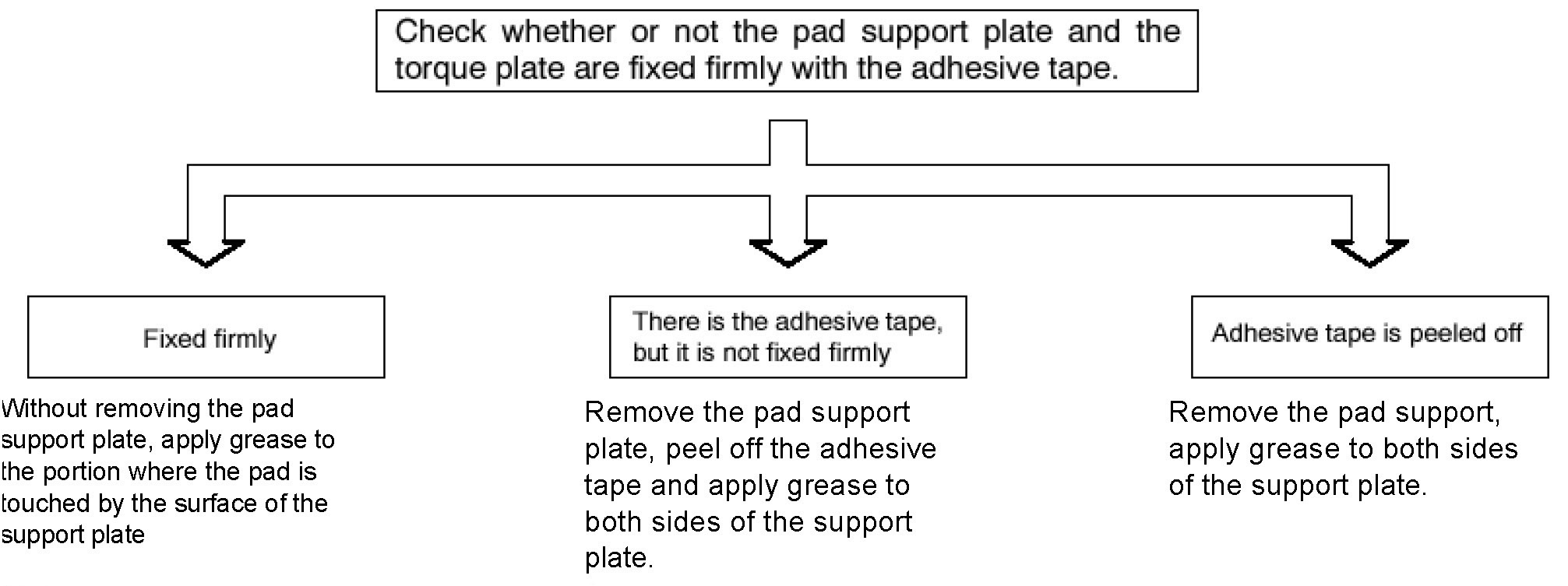If the pad support plate is fixed to the torque plate with adhesive tape, do the operation according to the flow chart.