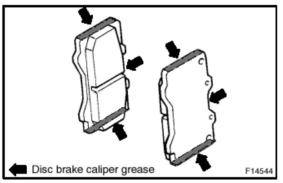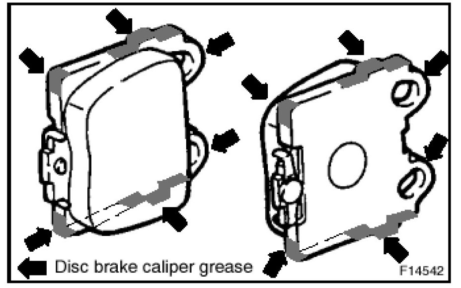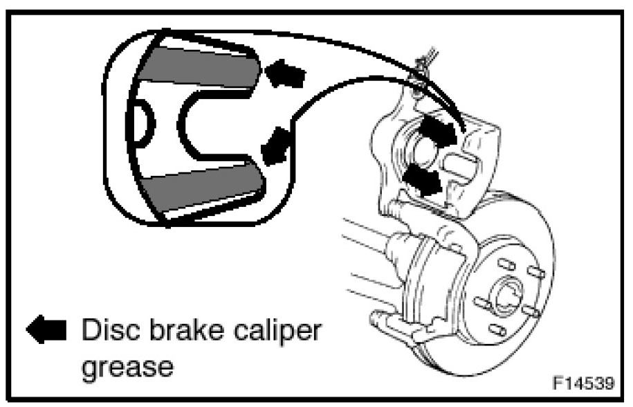 Do NOT apply grease to the friction surfaces of the brake pads or the disc rotor.