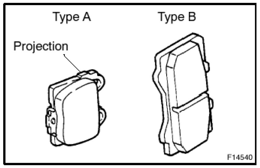- Type "A": Has a projection on the upper and lower side of brake pad.