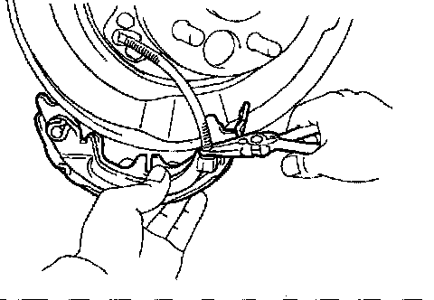 c) Disconnect the parking brake cable from the parking brake shoe lever.