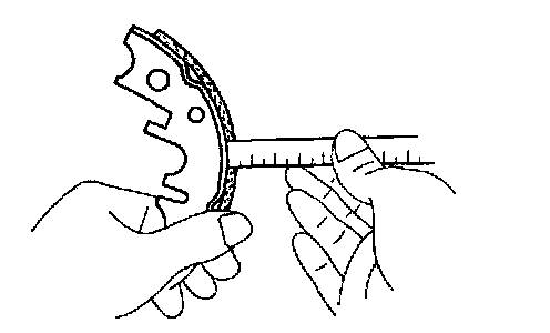 If the lining thickness is at the minimum thickness or less, or if there is severe and uneven wear, replace the brake shoe.