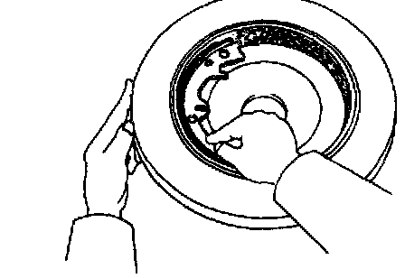 ^ If the disc cannot be removed easily, turn the shoe adjuster until the wheel turns freely.