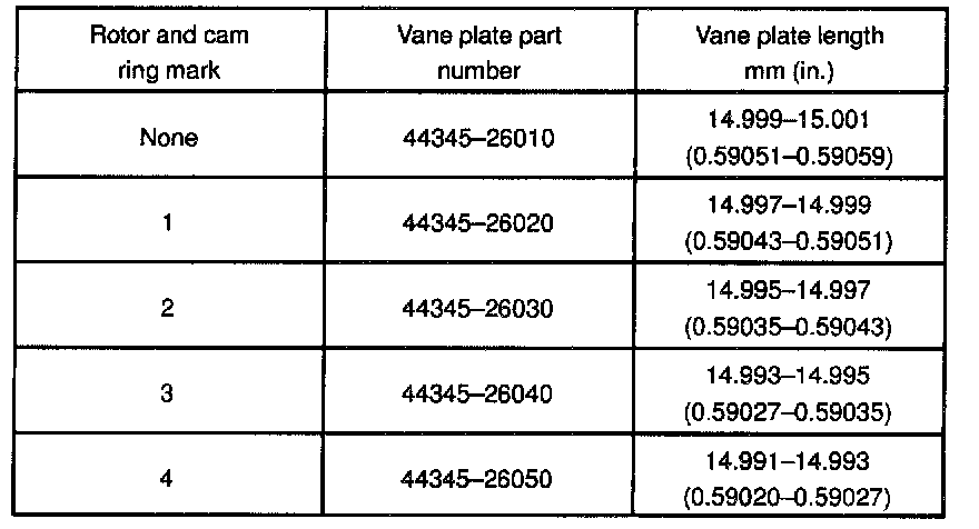If it is more than the maximum, replace the vane plate and/or vane pump rotor with one having the same mark stamped on the cam ring.