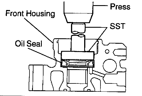 a. Using SST, tap out the oil seal from the front housing.