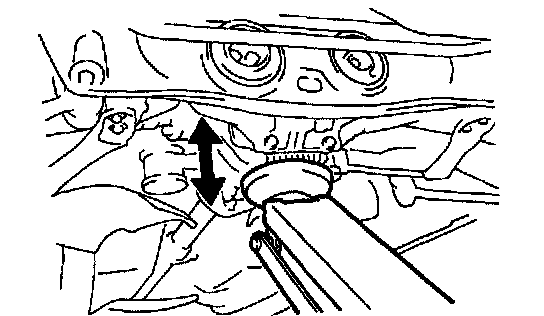 If the measured angle is not within the specification, adjust it with the center support bearing adjusting washer and differential adjusting shim.