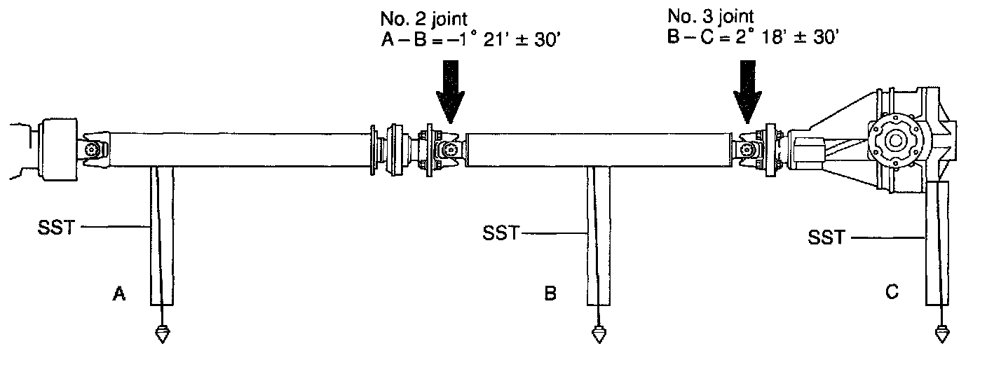 a. Using SST, measure the installation angle of the intermediate shaft and propeller shaft.