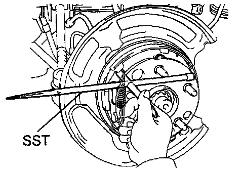 a) Using SST, remove the cap, shoe hold-down spring and pin.