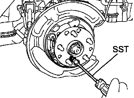 HINT: Do not disconnect the flexible hose from the brake caliper.