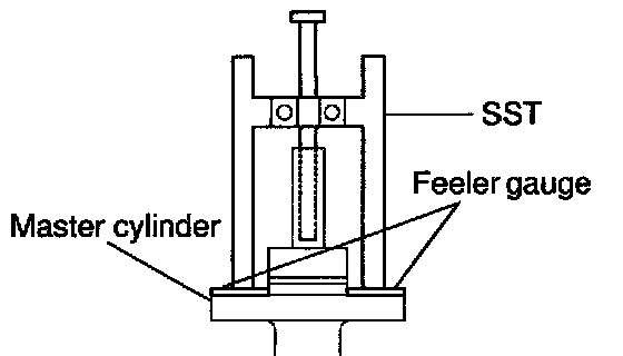 d) Measure the clearance between the booster push rod and pin head (SST).