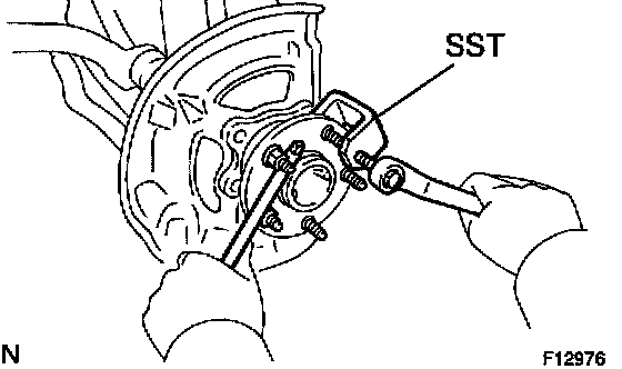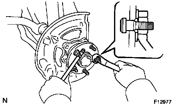Install washer and nut to the hub bolt as shown in the illustration, and install the hub bolt with torquing the nut.