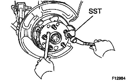 Install washer and nut to the hub bolt as shown in the illustration, and install the hub bolt with torquing the nut.