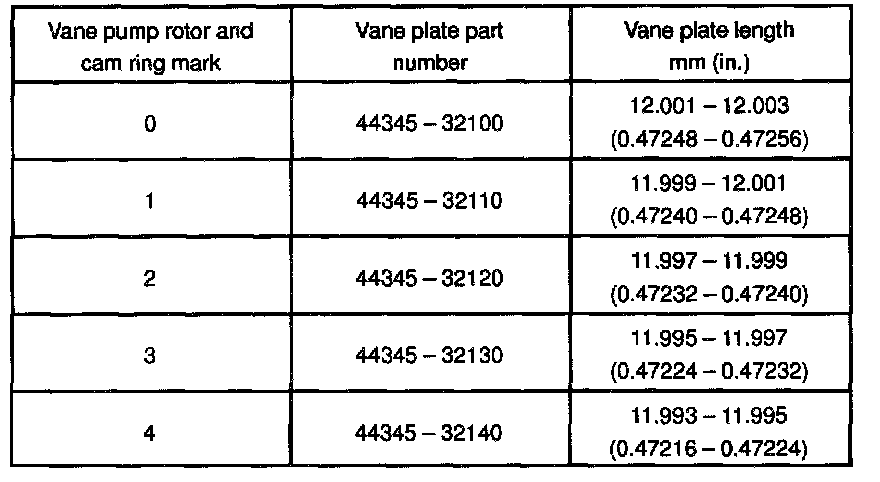 If it is more than the maximum, replace the vane plate and/or vane pump rotor with the one having the same mark stamped on the cam ring.