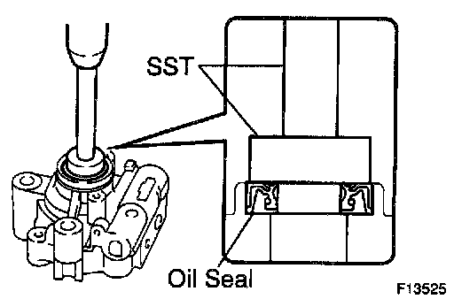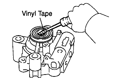 a. Using a screwdriver with vinyl tape wound around its tip, remove the oil seal.