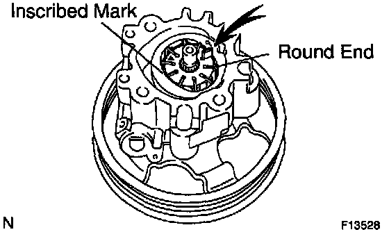 a. Install the vane pump rotor with the inscribed mark facing outward.