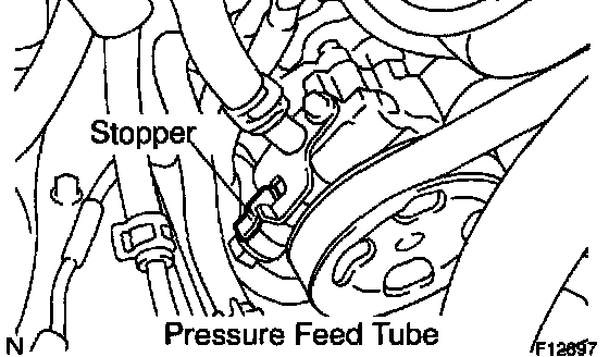 HINT: Make sure the stopper of the pressure feed tube touches the PS vane pump body as shown in the illustration, then torque the union bolt.
