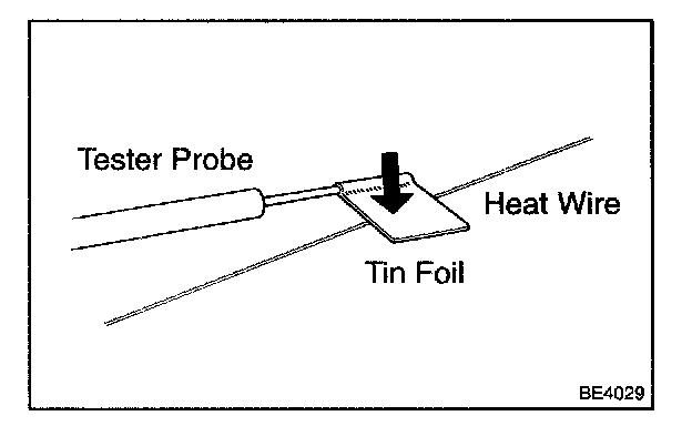 a. Inspect the continuity, at the center of each antenna wire, as shown in the illustration.