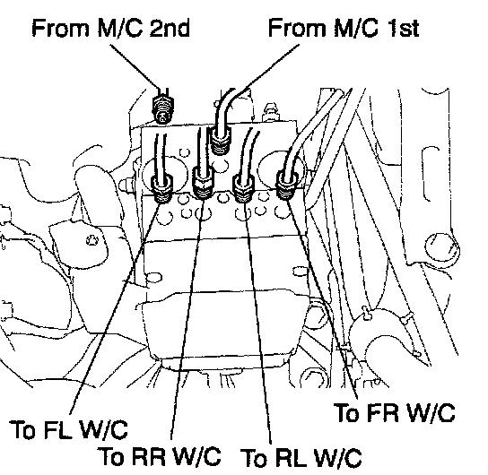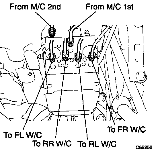 c. Using SST, connect the each brake line to the correct position of brake actuator, as shown in the illustration.