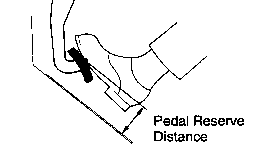 a. Release the parking brake pedal. With engine running, depress the pedal and measure the pedal reserve distance, as shown.
