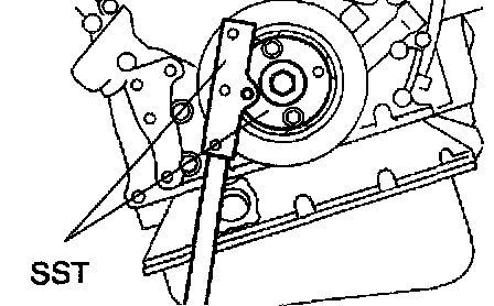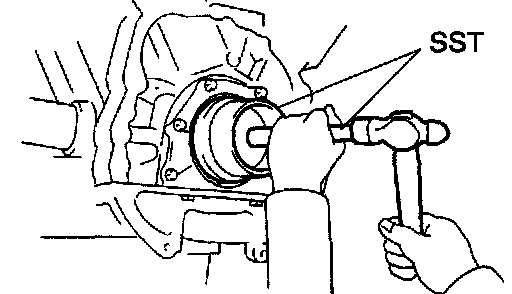 NOTICE: Keep the lip off foreign materials. Using SST and a hammer, tap in the oil seal until its surface is flush with the rear oil seal retainer edge.