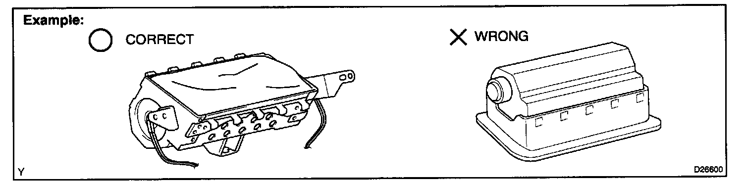 1. Always store a removed or new instrument panel passenger airbag assembly with the airbag inflation direction facing upward.