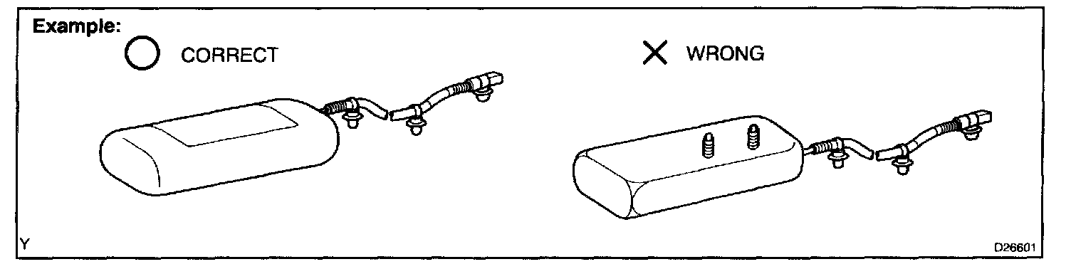 3. Grease should not be attached to the curtain shield airbag assembly, and the surface should not be cleared with detergents of any kind.