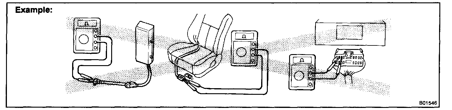 2. Never measure the resistance of the airbag squib (This may cause the airbag to inflate, which is very dangerous).