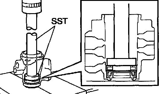 c. Using SST and a press, install the control valve upper bearing.