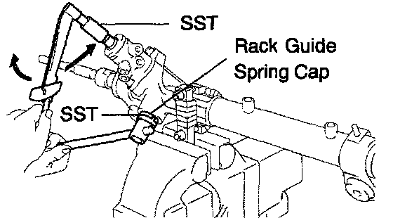 c. Using SST, loosen the rack guide spring cap.