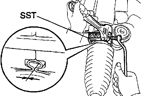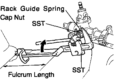 i. Using SST, hold the rack guide spring cap and using another SST, tighten the rack guide spring cap nut.