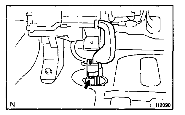 Remove the 2 bolts and disconnect the both tubes.