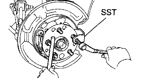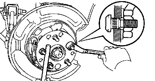 Install washer and nut to the hub bolt as shown in the illustration, and install the hub bolt with torquing the nut.
