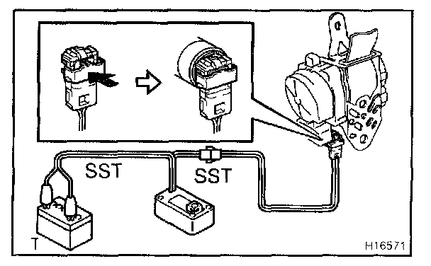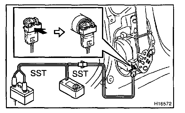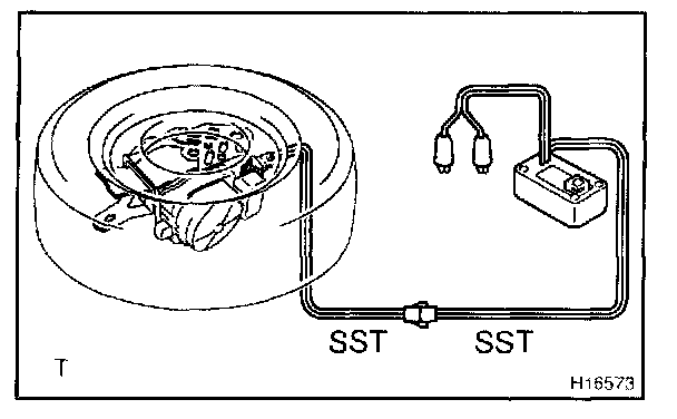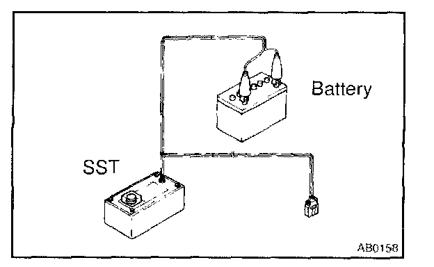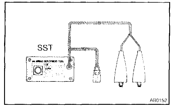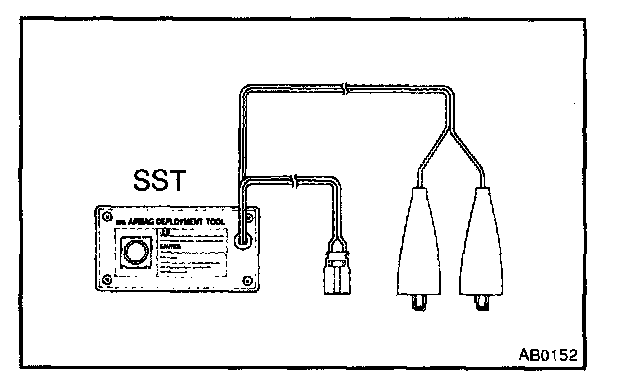 - When activating the seat belt pretensioner, always use the specified SST. (SRS Airbag Deployment Tool) Perform the operation in a place away from electrical noise.